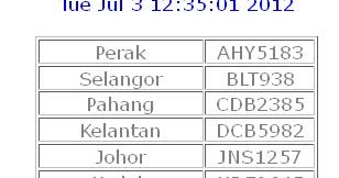 Senarai nombor plat kenderaan terkini untuk setiap negeri dan kawasan di malaysia akan dipaparkan di sistem semakan secara atas talian.