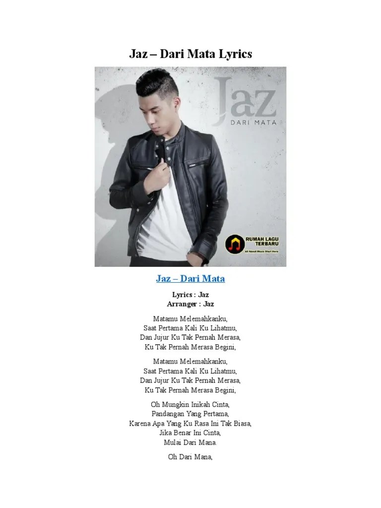 English translation of lyrics for dari mata by jaz. Lagu bergenre pop/ r&b ini diciptakan sendiri oleh jaz. Lagu yang catchy dan easy listening ini berkisah tentang Matamu melemahkanku saat pertama kali kulihatmu dan jujur, ku tak pernah merasa ku tak pernah merasa begini. Oh, mungkin inikah cinta pandangan yang pertama karena apa yang kurasa, ini tak biasa.